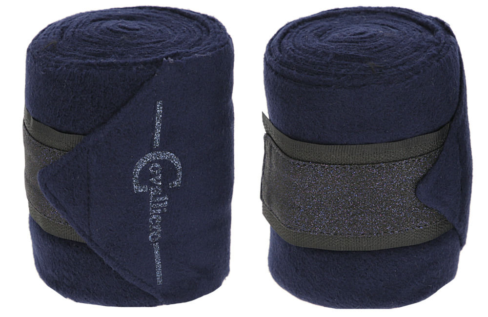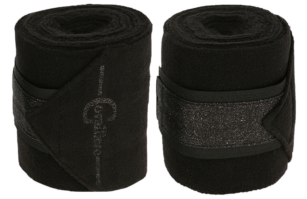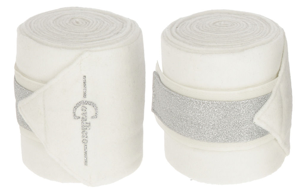 Стильные флисовые бинты c аппликацией из мелких блесток. Бинты идеально подходят к вальтрапам Covalliero серии Empara Бинты выполнены из высококачественного нескатывающегося флиса и крепятся с помощью застежки-липучки. Набор из 4 штук в сумочке из полиэстера. Длина 3 метра, ширина 12 см.