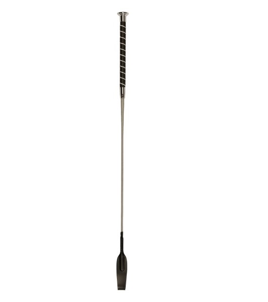 Конкурный хлыст с кожаной ручкой, декорированной маленькими стразами, и металлическим наболдашником. Стержень из гибкого стекловолокна в нейлоновой оплетке.