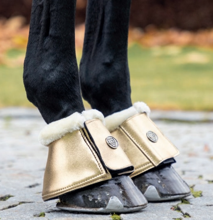 Высококачественные колокольчики из износостойкой искусственной кожи с неопреновой подкладкой. Они не только красивые, но и обладают высокими защитными свойствами. Искусственный мех придает этим колокольчикам роскошный вид и защищает от натирания, а прочный и крепкий материал защитит копыто от ударов. Верхнее покрытие из искусственной кожи легко поддается чистке. Застежка - двойная липучка. Идеально сочетаются с ногавками Covalliero осенне-зимней коллекции 2022г