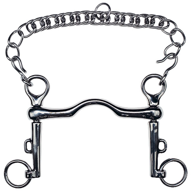 Люфт между грызом и щеками позволяет лошади играть мундштуком. Нержавеющая сталь. Толщина грызла 15мм. Высота рычага для размера 11,см — 115мм, для размера 12,5см, 13,5см - 125мм