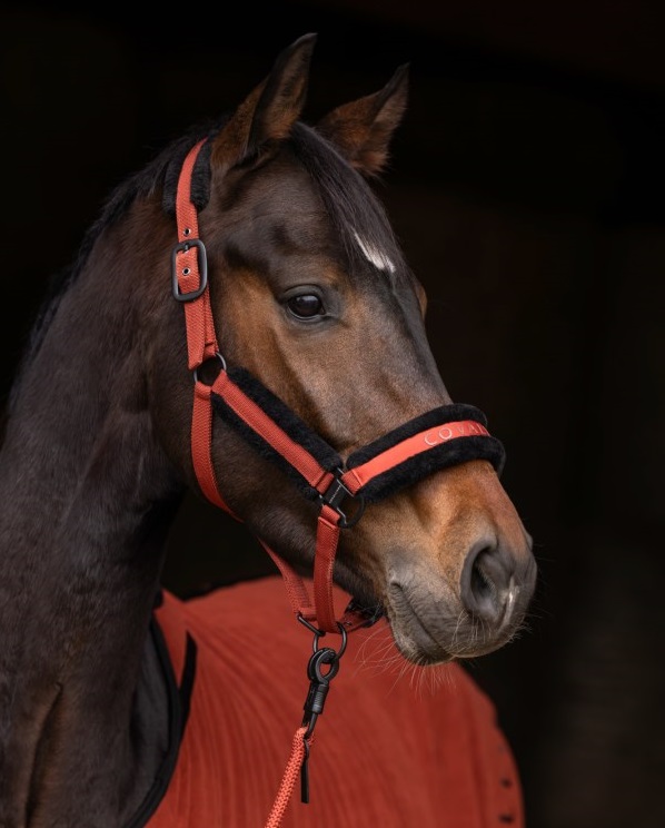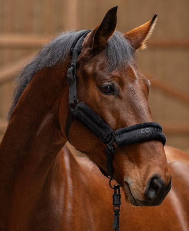 Недоуздок из новой коллекции Covalliero осень-зима 2025-2026 с мягкой подкладкой из искусственного меха для защиты от натирания и максимального комфорта. Прочная фирменная фурнитура темного цвета. Двойная регулировка на затылке и регулировка на храпе. Отстегивающийся карабин для удобства одевания.