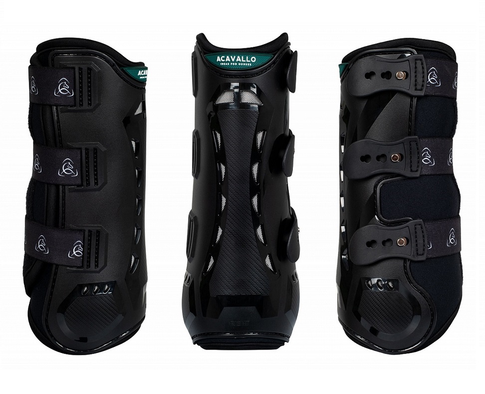 Выездковые ногавки "Anatomical Dressage Boots" для защиты сухожилий. Анатомическая форма гарантирует максимальный комфорт и не стесняет движения лошади. Жесткий каркас отлично защищает от ударов, а дышащая перфорированная подкладка обеспечивает максимальный отвод тепла без перегрева ног. Быстросъемная система крепления на "гвоздиках" для идеальной посадки по ноге. Фирменный силиконовый принт Acavallo.
