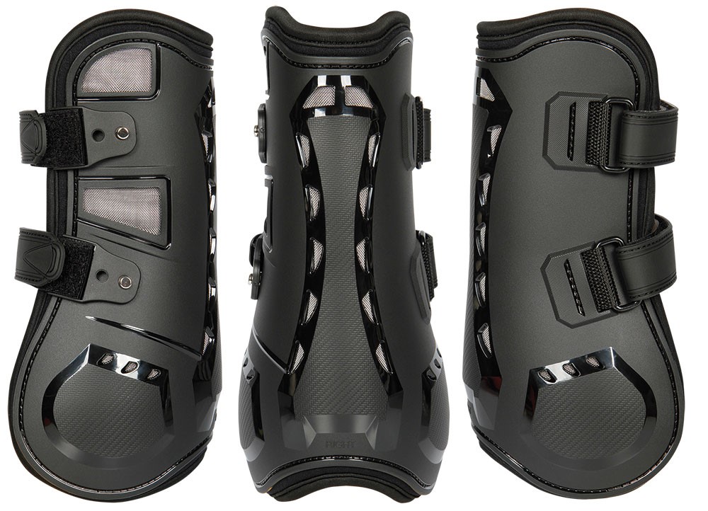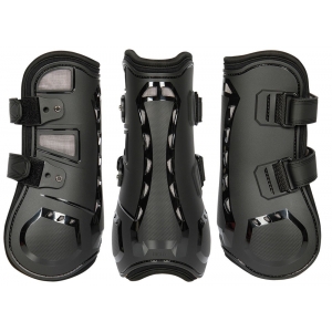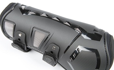 Передние ногавки из ударопрочного гибкого TPU пластика с мягкой неопреновой подкладкой. Ногавки, благодаря перфорированной 3D сетке, обеспечивают хорошую циркуляцию воздуха и предотвращают перегрев сухожилий и связок. Анатомическая форма и двойные прочные эластичные застежки на штырькаx создают устойчивое положение на ноге. После того, как застежки на липучке отрегулированы, их легко открывать/закрывать с помощью специальной кнопки.