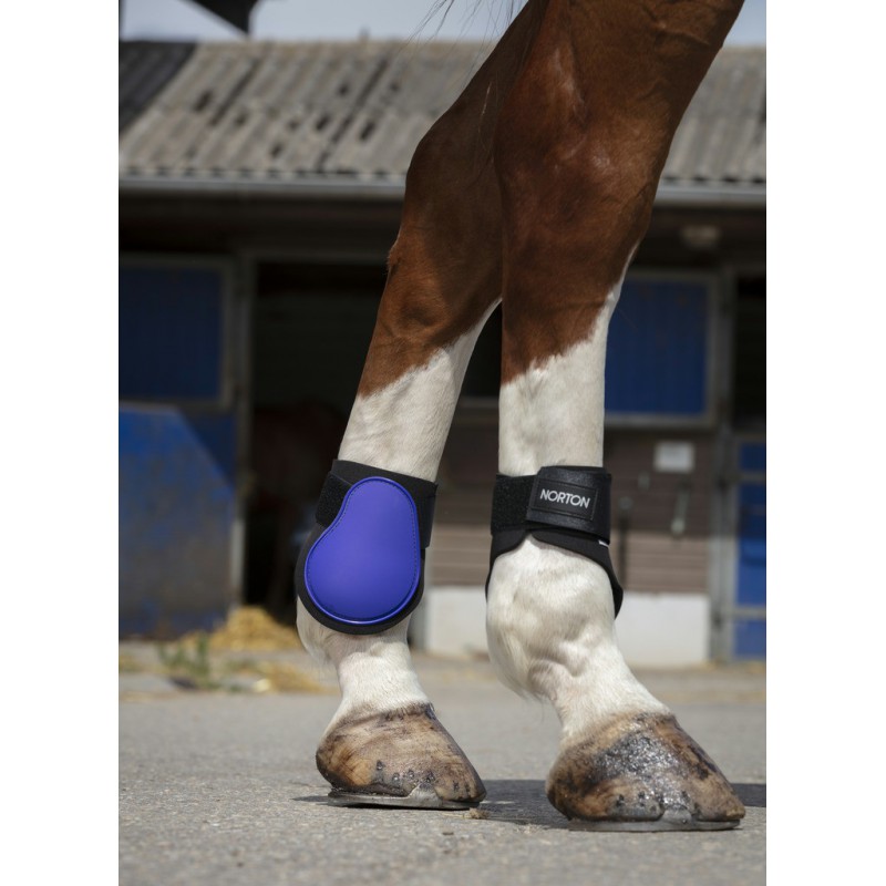 Задние анатомические ногавкив форме лепестка из гибкого пластика на мягкой неопреновой подкладке (толщина 5 мм). Технические качества и используемые материалы обеспечивают хорошую защиту и поддержку сухожилия, а также гарантируют комфорт для лошади. Застегиваются крепкими широкими липучками. Легкие в уходе.