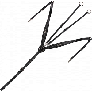 Стильное кожаное подперсье со скользящим мартингалом и красивой декоративной вышевкой Подперсье выполнено из итальянской кожи высшего качества с мягкой подложкой и крепкой фурнитурой из нержавеющей стали. Эластичные резиновые вставки в цвет на плечах. Съемные усы мартигала пристегиваются с помощью карабинов. Цве:т черный с серебристой фурнитурой.