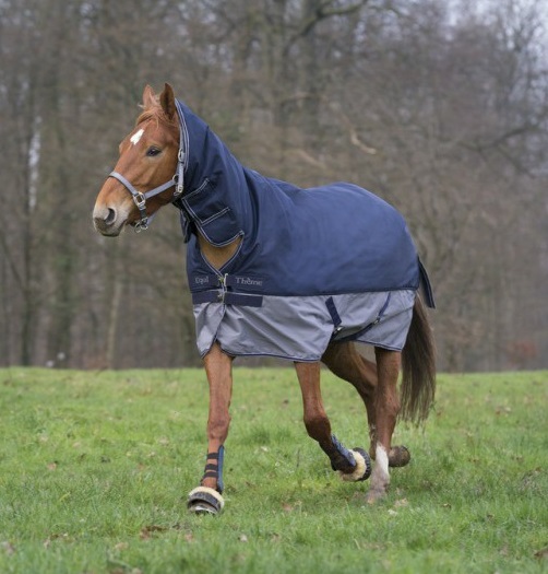 Эта прочная прогулочная дождевая попона с капором защитит вашу лошадь в непогоду. Попона оснащена двойной застёжкой на груди, перекрестными попонодержателями под животом, клапаном для хвоста и держателями для ног. Попона изготовленная из крепкого материала Rip Stop - дышащего и не пропускающего влагу, плотностью 600Den., внутренняя ткань - 100% нейлон Машинная стирка при 30 градусах.