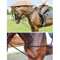 | | Скользящий и балансирующий повод относятся к вспомогательным поводьям, которые облегчают тренировочный процесс и заставляют лошадь опускать шею и голову и раслаблять спину.