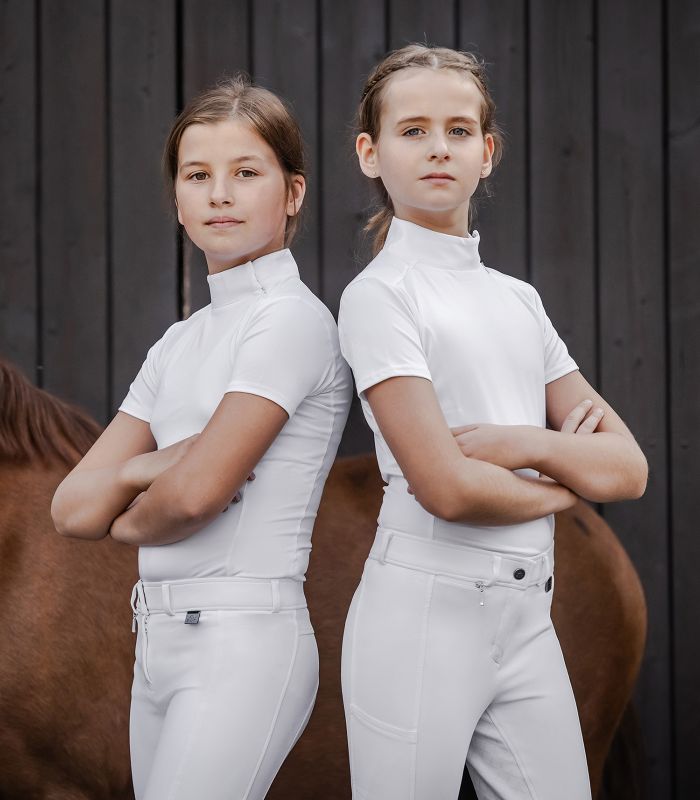Спортивная, функциональная детская рубашка для соревнований. Изготовлена из мягкой высококачественной ткани. Прекрасно пропускает воздух и отводит влагу наружу. Воротник-стоечка на невидимых кнопках. Потайная застежка-молния на плече. Материал: 92% полиэстер, 8% эластан.