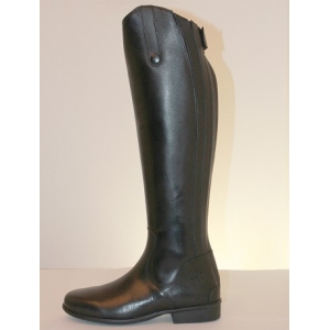 Прекрасный недорогой вариант сапог для занятий верховой ездой из натуральной кожи. Длинная молния находится сзади, что позволяет значительно легче их надевать. Эластичная резиновая вставка по бокам задней молнии позволяет увеличить объем голенища на несколько сантиметров. Цвет: черный