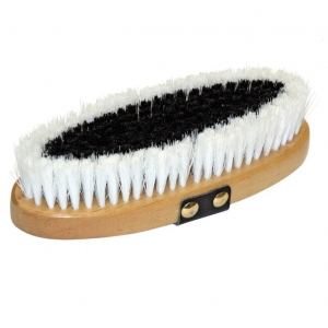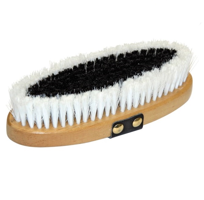 Щетка с искусственной щетиной средней жесткости на деревянной основе и ремешком для руки. Щетки средней жесткости отлично подходят для ежедневного применения. Размер 22 X 9 см. Длина щетины 3 см.