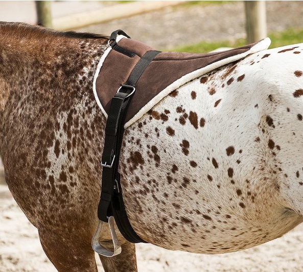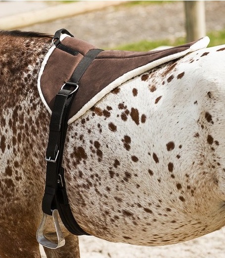Седло-пад сделано в стиле Новахо (Navajo Bareback Saddle). Идеально подойдет для любителей поездить без седла, но при этом сохранит спину лошади. Прочная тесьмяная ручка, подпруга и путлища. Подкладка из искусственного меха
