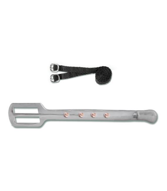 Классические шпоры-капельки из нержавеющей стали с нейлоновыми тренчиками в комплекте. Шпоры украшены четырьмя сверкающими стразами.