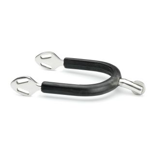 Шпоры из прочной нержавеющей стали с гладким, свободно вращающимся колесиком диаметром 16,5 мм. Шпоры покрытые резиновой оболочкой, защищающей ваши сапоги от царапин.