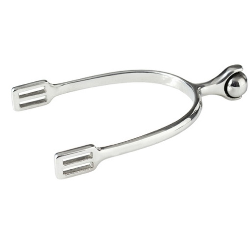 Такая форма шпор помогает всаднику мягко воздействовать на лошадь. Вращающийся шарик не позволяет всаднику поднимать пятку во время работы шпорой. Шпора с шенкелем 3 см. Материал: высококачественная нержавеющая сталь.