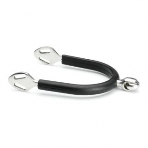 Такая форма шпор помогает всаднику мягко воздействовать на лошадь. Вращающийся шарик не позволяет всаднику поднимать пятку во время работы шпорой. Шпора с шенкелем 20 мм. Материал: высококачественная нержавеющая сталь, покрытая резиновой оболочкой, защищающей ваши сапоги от царапин.