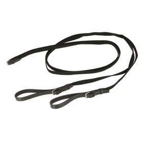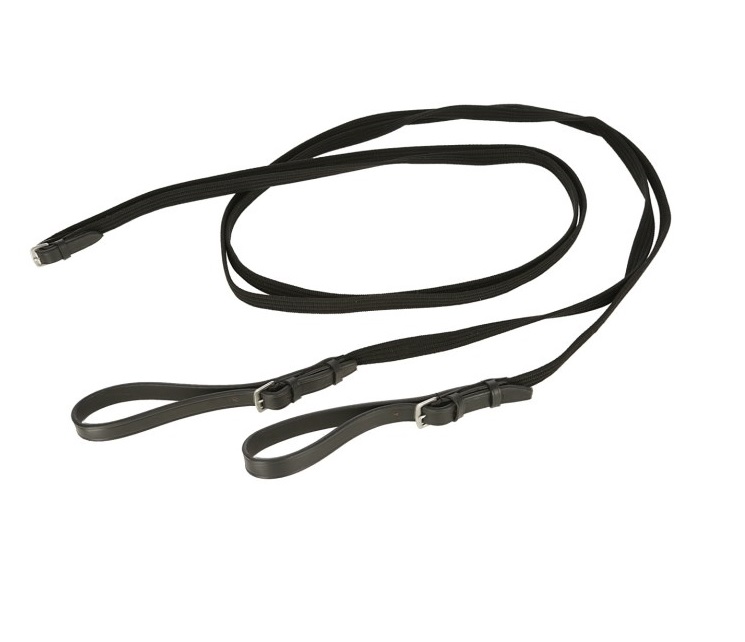 Скользящий повод из длинной тесьмы и двух кожаных петель на пряжках. Скользящий повод - это вспомогательный повод, идущий от подпруги (снизу или по бокам) через трензельные кольца в руки всадника. Не даёт лошади высоко поднимать голову и помогает наладить контакт с лошадью в некоторых ситуациях. Цвет: черный. Длина 4,5 метра.