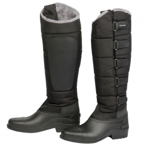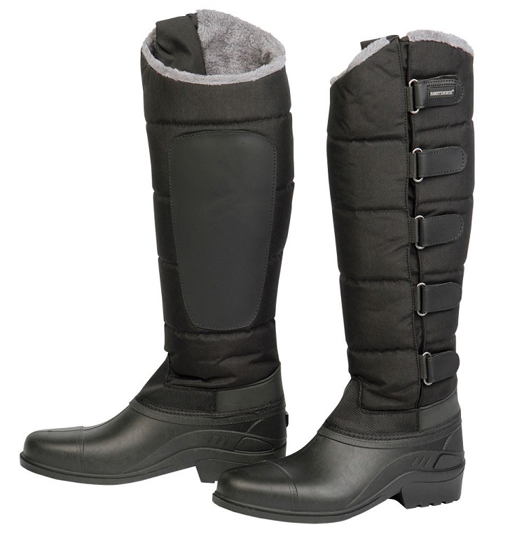 Утепленные сапоги с водонепроницаемой подошвой, застежками-липучками и теплой серой подкладкой из искусственного меха.