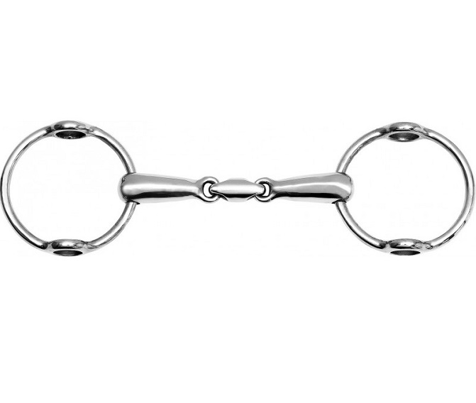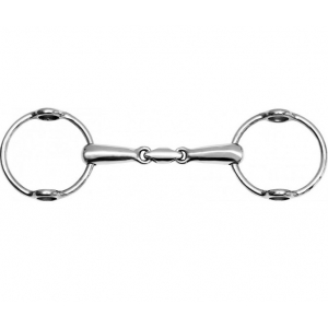 Этот трензель позволяет контролировать не только рот лошади, но и ее затылок. В кольцах этого трензеля существуют отверстия, через которые продеваются кожаные или веревочные ремешки. Эти ремешки одним концом крепятся к нащечным ремням, а другим - к поводу. Основное действие этой конструкции - поднимающее голову лошади. Часто трензель используется с двумя поводьями, один из которых пристегивается к трензельному кольцу, а второй - к ремням. Два повода смягчают действие скользящего трензеля. Основную часть времени используется повод, пристегнутый к кольцам, а второй повод работает только при необходимости, и лошадь не подвергается постоянному воздействию трензеля, тянущего наверх. Материал нержавеющая сталь.