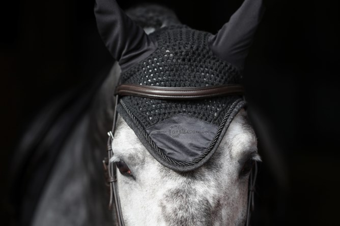 Ýòè óøêè ñ ñåò÷àòîé âÿçàííîé òêàíüþ è äåêîðàòèâíîé îêàíòîâêîé ïîñëóæàò îòëè÷íîé çàùèòîé è óêðàøåíèåì ëîøàäè. Îíè íå äàäóò íàñåêîìûì îòâëåêàòü ëîøàäü îò ðàáîòû. Ýòè óøêè òàêæå íóæíû, åñëè âû èñïîëüçóåòå âàòíûå øàðèêè, ÷òîáû ïðèãëóøèòü óðîâåíü øóìà äëÿ ÷ðåçìåðíî ïóãëèâûõ ëîøàäåé. Ïðåêðàñíîå ñî÷åòàíèå ñ âàëüòðàïàìè è áèíòàìè Covalliero Empara!