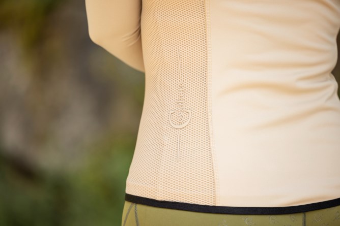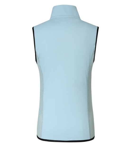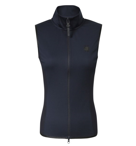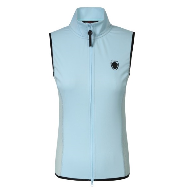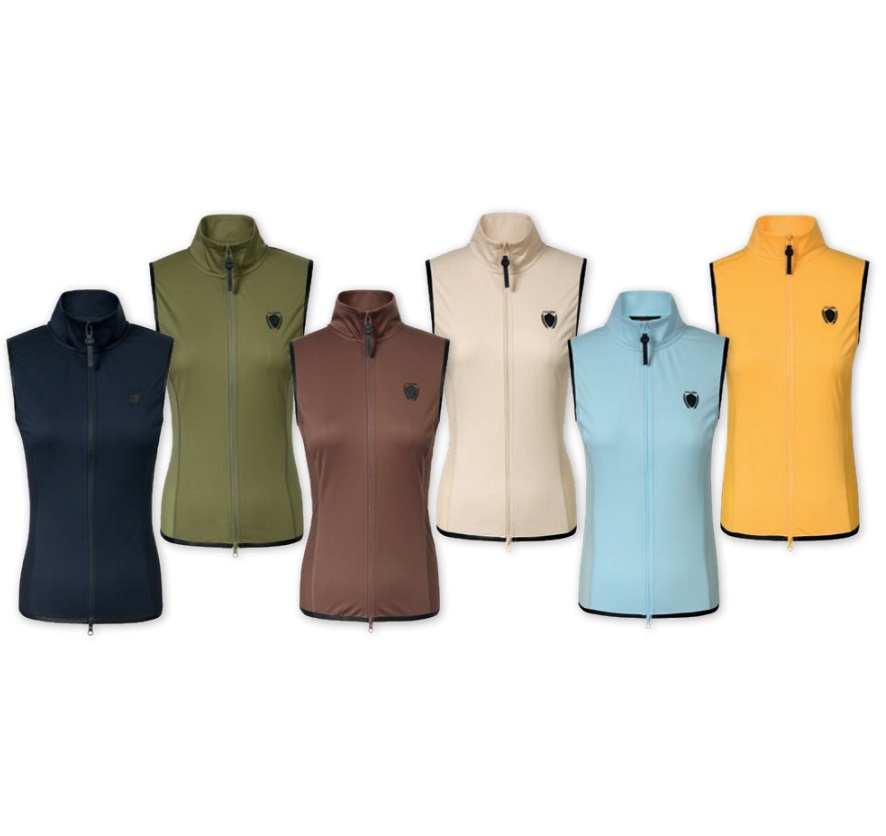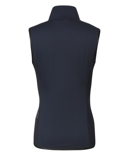 Вставки из эластичной сетчатой ткани по бокам обеспечивают идеальную посадку по фигуре. Жилет c приталенным женственным кроем и двумя скрытыми передними карманами. Несмотря на обтягивающую посадку, жилет не сковывает движения всадника.
