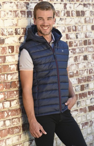Мужской жилет с капюшоном для верховой езды. Жилет выполнен из мягкой водоотталкивающей ткани (внешняя сторона - полиамид, внутрення сторона - полиэстер). Скрытые карманы на молнии с двух сторон. Машинная стирка при 30 градусах