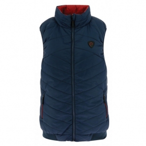 Мужской стеганный двусторонний и двухцветный жилет. Жилет выполнен из мягкой водоотталкивающей ткани (внешняя сторона - полиамид, внутрення сторона - полиэстер). Скрытые карманы на молнии с двух сторон. Машинная стирка при 30 градусах