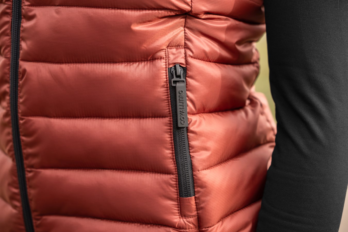Стеганый жилет из коллекции Covalliero осень-зима 2025-2026 — идеальное сочетание функциональности и стиля. Эта нестареющая классика обеспечивает оптимальный комфорт благодаря утеплителю из искусственного пуха. Женственный, приталенный крой. Съемный капюшон. Два кармана для рук на молнии. Двусторонняя молния. Эластичный низ и манжеты.